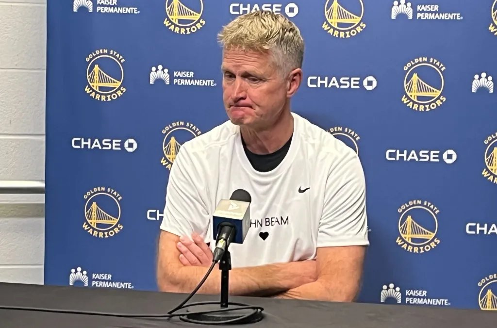 SAN ANTONIO – Vestindo uma camisa branca com ‘John Beam’ escrito e um coração preto na frente, o técnico do Warriors, Steve Kerr, abriu sua coletiva de imprensa antes do jogo na noite de sexta-feira em San Antonio, compartilhando seus pensamentos sobre o falecido treinador de futebol e ícone de Oakland.