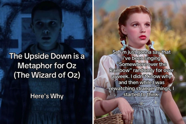 O Mágico de Ozcomo Coisas estranhasUm herói mergulha em uma realidade alternativa surreal cheia de perigos e enganos. TikTok continua defendendo o caso citando o texto: “Existem muitos arco-íris quando se trata de prever alguém de cabeça para baixo. O Mágico de Oz. Max até chama isso de ‘pesadelo acordado’ e Victor Creel pode ser ouvido cantando ‘Dream a Little Dream of Me’.