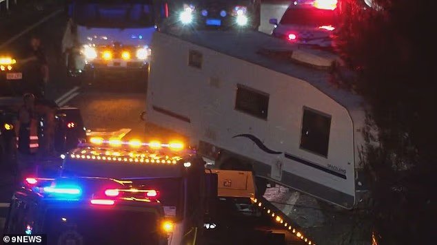 A caravana acelerou enquanto descia a colina, ultrapassando o Nissan X-Trail do homem e ambos caíram em uma vala a cerca de 80 metros de distância, disse a polícia.