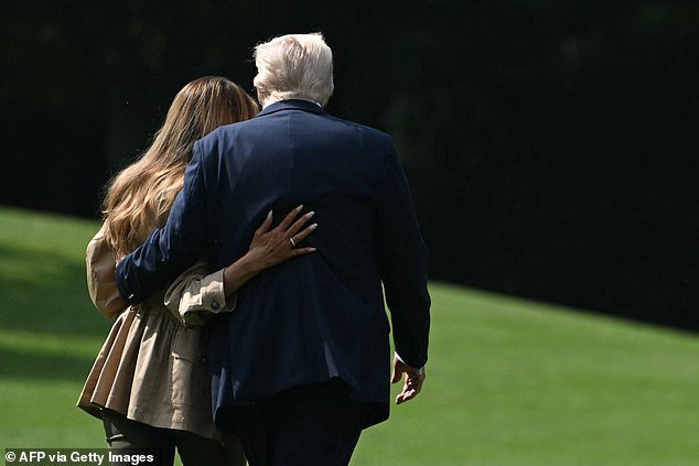 Eles se levantaram no Marine One e tiveram esse carinho. O presidente estava andando pela esposa enquanto caminhava sobre o gramado.