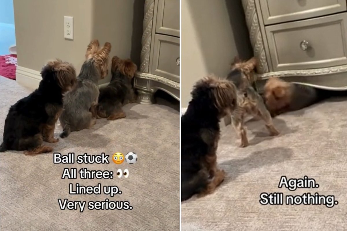 Depois que a bola de um Yorkshire terrier escapou do alcance da família, os cães não perderam tempo em recuperá-la, obtendo mais de 2,1 milhões de visualizações no TikTok.