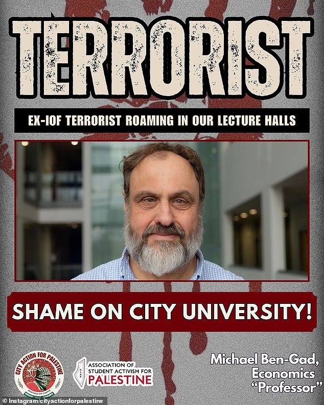 Uma declaração assinada por professores e professores de instituições do Imperial College London à Universidade de Oxford dizia: ‘Nós, abaixo-assinados, estamos profundamente preocupados com uma campanha de assédio direcionada contra Michael Ben-Gad, professor de economia na City St George’s, Universidade de Londres, liderada por um grupo que se autodenomina.