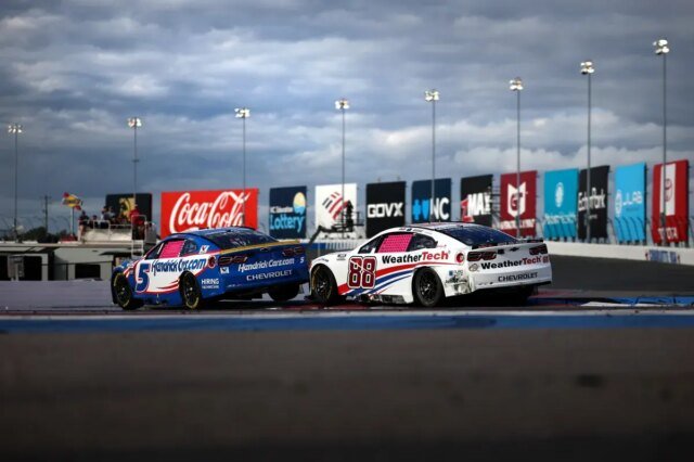Em uma ordem, o trackhaus da SVG correndo para o Henrick Motorsports da Shevrolet Larson, Chevrolets, embora Larson não tenha dado uma polegada, leve à comunicação e trocou tinta de veículo.