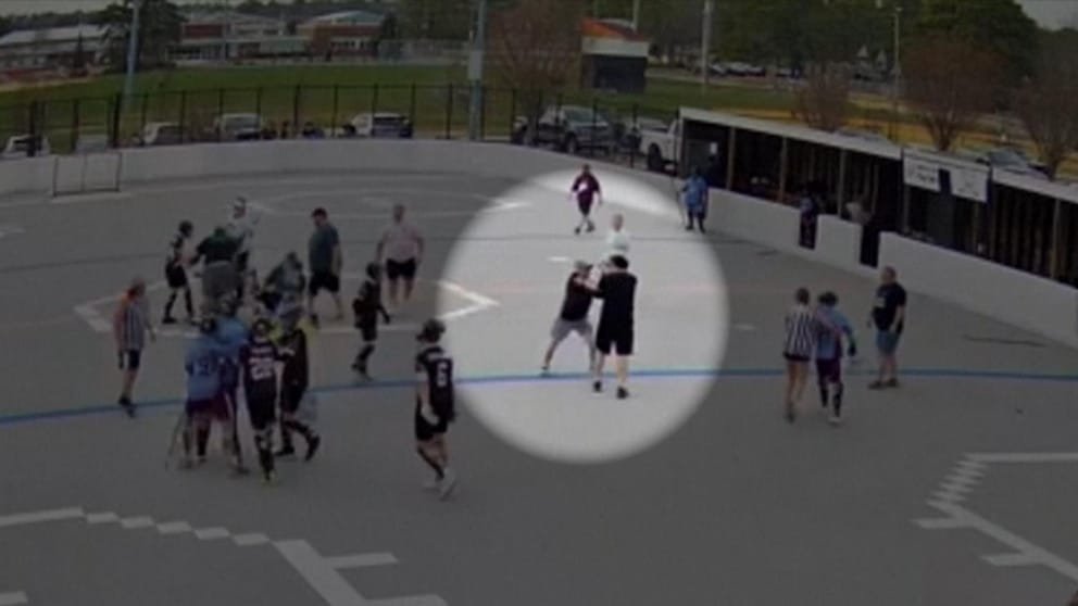 Três adultos foram acusados de atacar e caóticos depois que o jovem jogo de hóquei foi jogado no município de Nova Jersey Harbor Township.