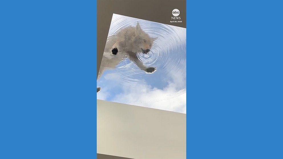 Um momento tranquilo da janela de skylite no topo do salão de cabeleireiro em Los Angeles foi capturado na câmera enquanto bebia uma citação de água potável.