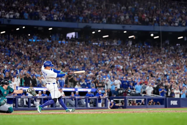 Esta dinâmica intensificou-se no mês passado, à medida que estes gaios, na sua maioria americanos, debandaram durante o mês de Outubro, levando todo o Canadá pelo caminho. O beisebol é um grande negócio aqui agora, com o logotipo do time com um pássaro e uma folha de bordo espalhado pela cidade. O primeiro-ministro canadense, Mark Carney, até apareceu no Rogers Centre no dia do treino, tendo uma longa conversa com Snyder, o gerente geral Ross Atkins e o presidente da equipe, Mark Shapiro.